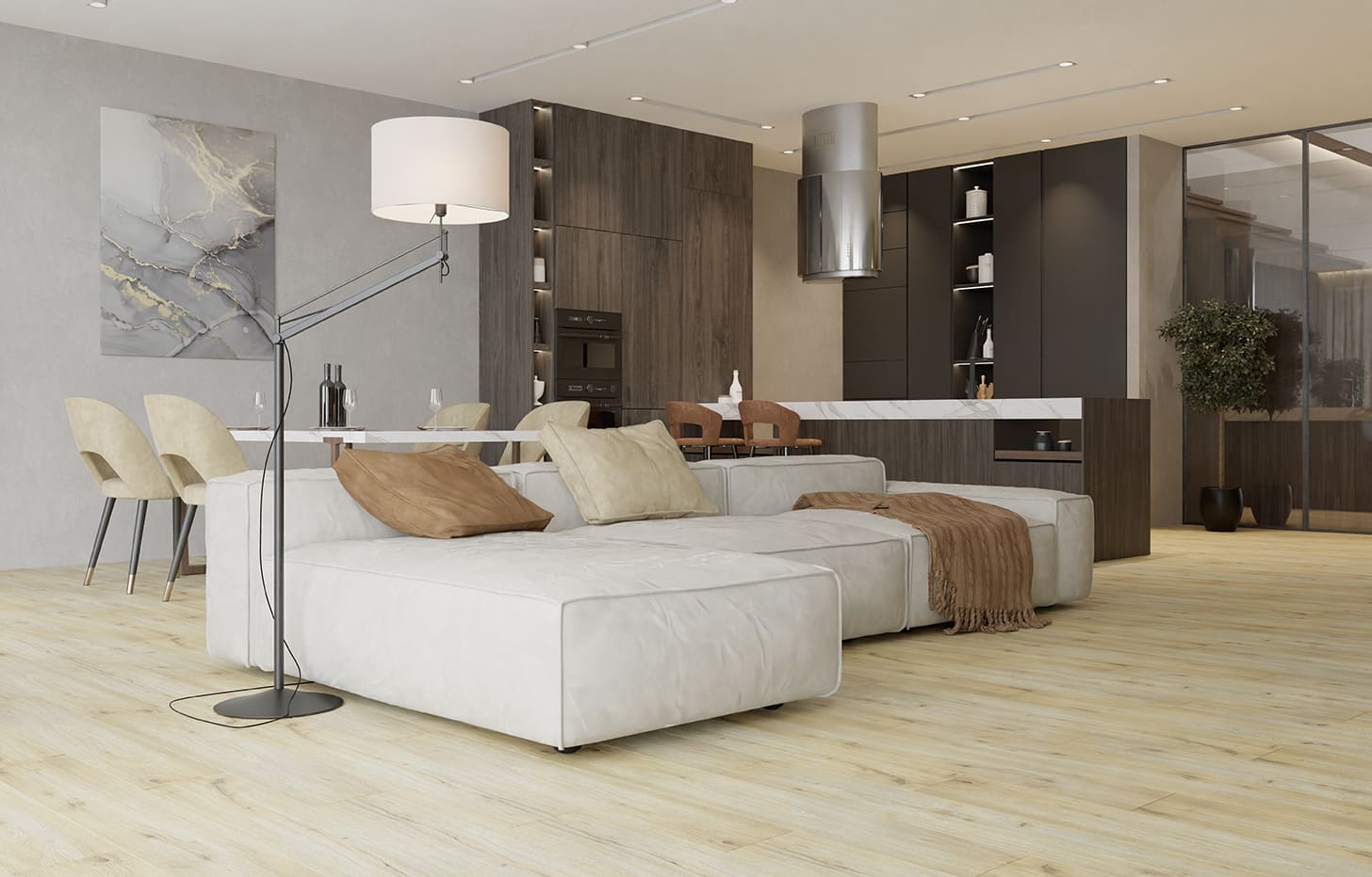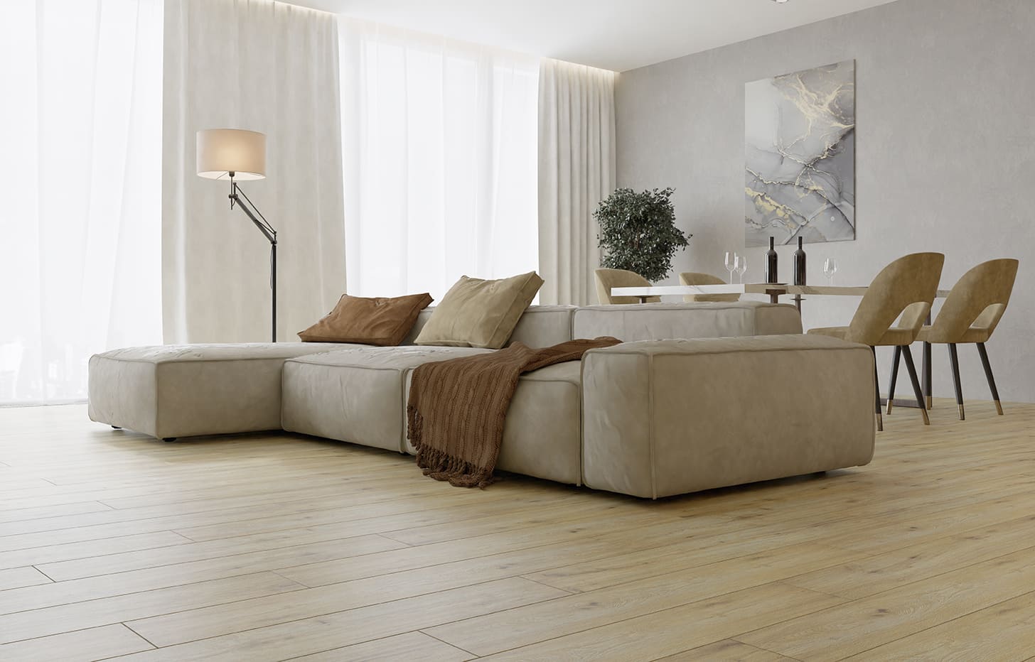 Адреса магазиновМинерально-каменный ламинат MSPC Дуб Морской песок (арт. 0026-2 MP) имеет нейтральные спокойные оттенки. Может стать прекрасной основой под интерьер любого стилевого направления. Имеет усиленную anti scratch защиту поверхности, что позволяет использовать этот дизайн для первого этажа загородного дома, где есть вероятность появления естественного абразива в виде пыли и песка наносимых с улицы.
