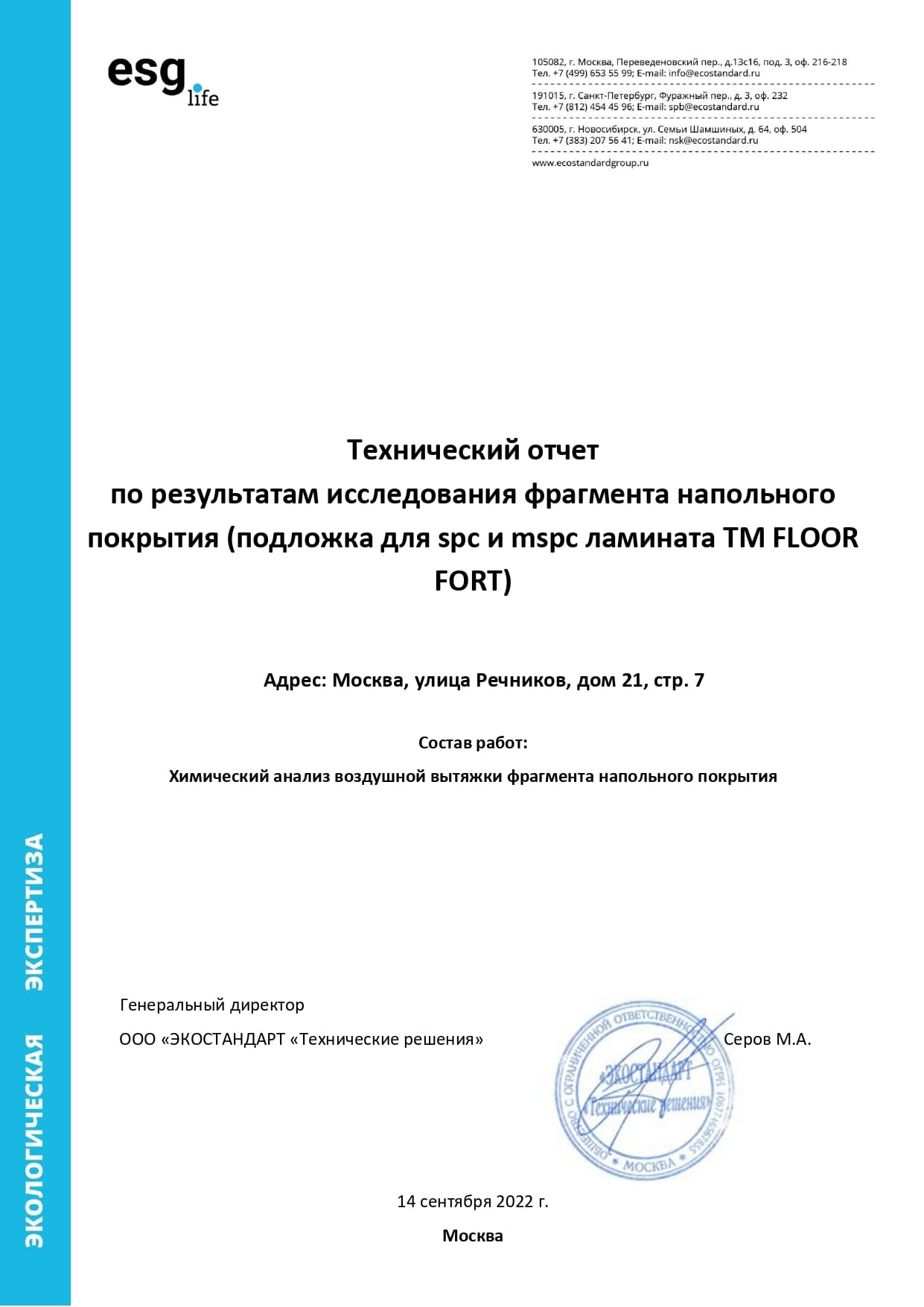 Экологическая экспертиза подложки Floor Fort