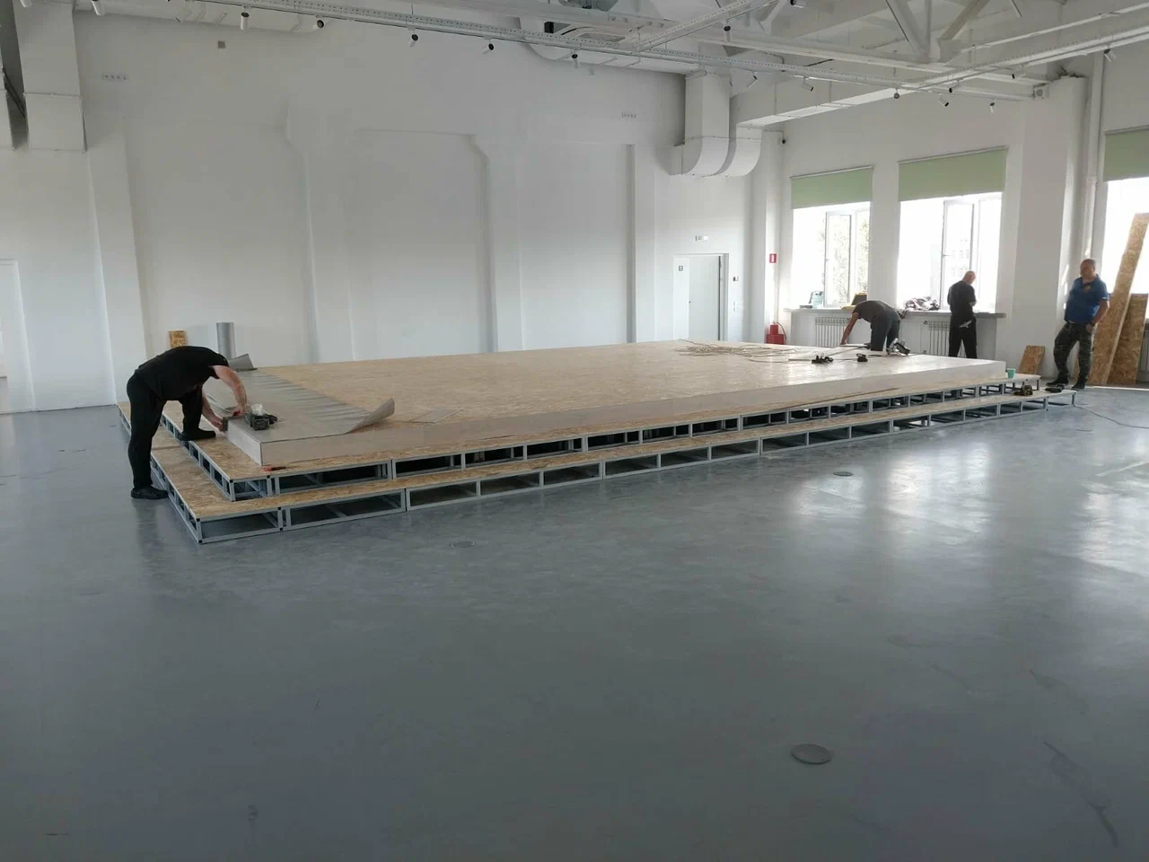 Делимся опытом применения MSPC ламината STONE FLOOR толщиной 8мм на нестандартном объекте: Школа креативных индустрий, подиум (сцена) в зале. Была задача подобрать и смонтировать в сжатые сроки покрытие для подиума с высокими эксплуатационными характеристиками. MSPC Stone Floor толщиной 8мм уст...