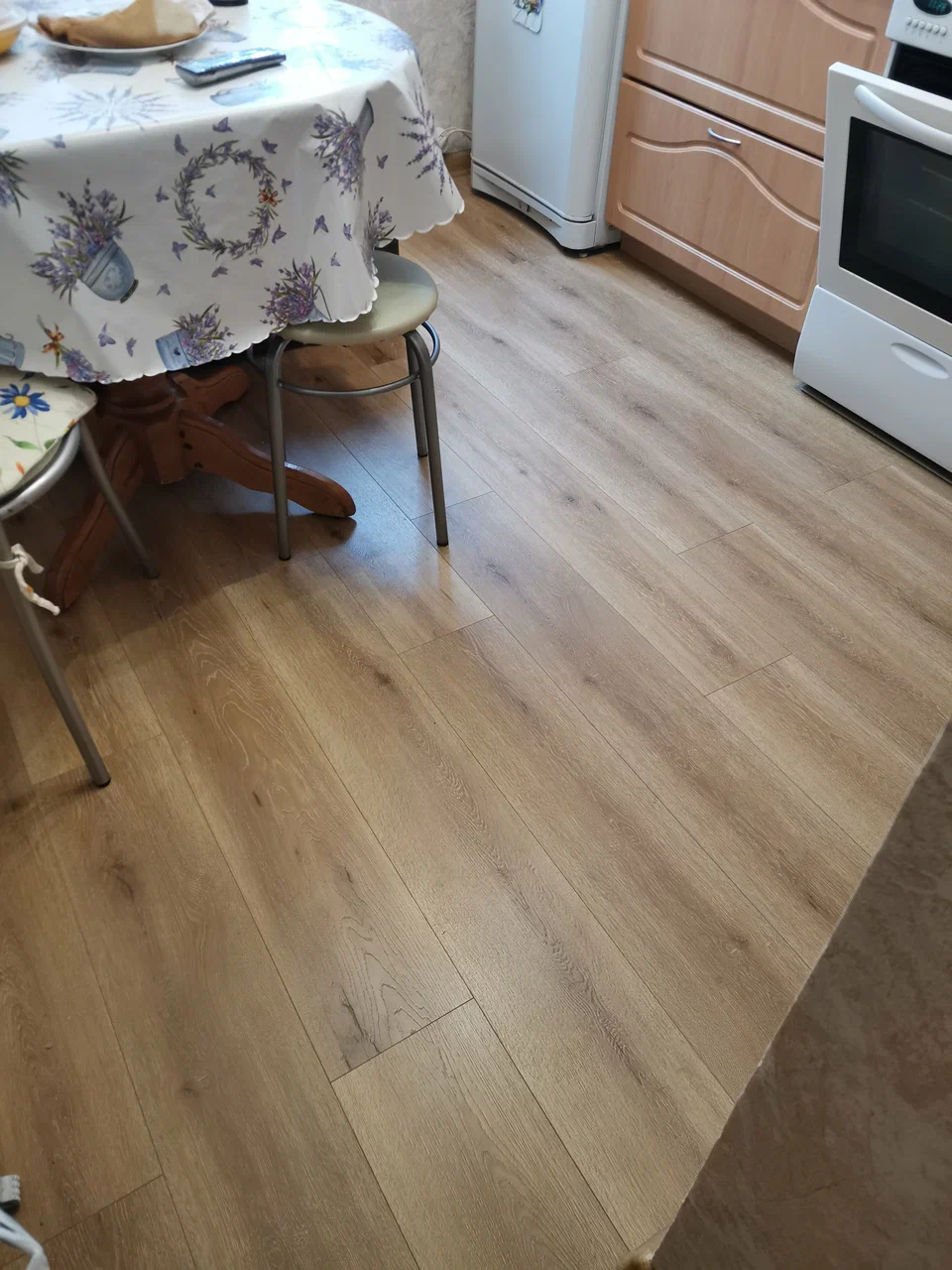 Общее впечатление: Мы не жалеем, что выбрали этот ламинат, хотя были одними из первых. Он выигрывает по всем показателям в сравнении с кварцвинилом, несмотря на то, что дороже.